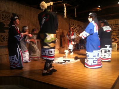 園内にはアイヌの人達が住んでいた建物が再現されて建ち並んでいます.そしてその中では一日数回アイヌの末裔の方々が民族舞踊や歌,伝統楽器の演奏などを披露しています.入園したタイミングでちょうど開始されたので,一通り見ることができましたよ.なんと天皇陛下も来園してご覧になったそうです.